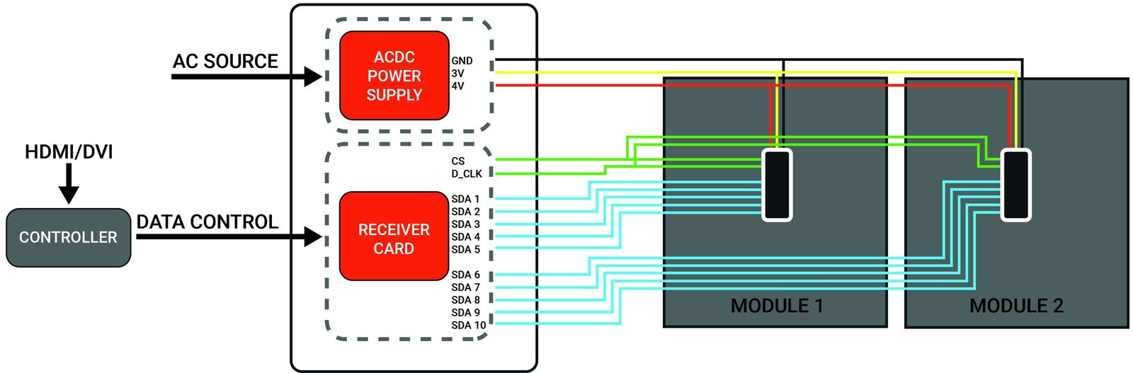 Dieser Videocontroller unterteilt das darzustellende Bild in einzelne, dem LED-Module (IF09HP0.0) entsprechenden Segmente und steuert diese einzeln an, um auf dem Cabinet (D09NWG0.0) das Gesamtbild darzustellen (Abbildung 5).